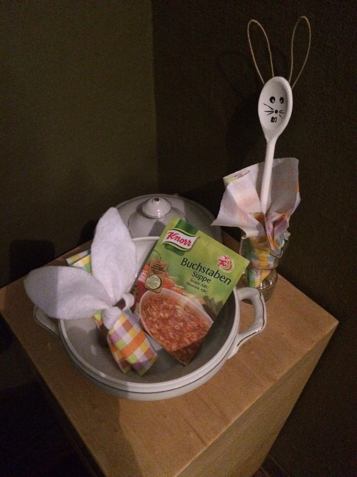 Frau Christina Schneider Pfändler zeigte ihre Suppenschüsselsammlung und bot mit Yvonne Joos-Halter zusammen einen Mini-Workshop für Grosse, Kleine, Ältere und Jüngere, Lehrpersonen und Privatpersonen... passend zum Thema: Ostertisch an.