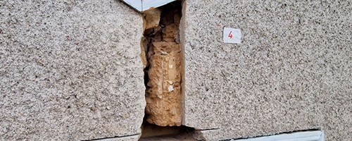 Ein Zweck der Trägerstiftung des Schulmuseums ist die Erhaltung des Pisébaus aus dem Jahr 1846. Investierte die Stiftung 1,3 Millionen Schweizer Franken vor 25 Jahren für den Erhalt und den Ausbau zum Museum, waren 2025 weitere 200‘000 Franken notwendig, um insbesondere Fassade und Holzgewerk instand zu setzen und den seltenen Bau aus ungebranntem Lehm (Pisébau) vor Witterungs- und Wasser-Schäden zu schützen. Mehr Informationen im PDF zur Ansicht und Download. Unten: Beispiel der Verputzsanierung zum Schutz der 180-jährigen Stampflehmmauer.