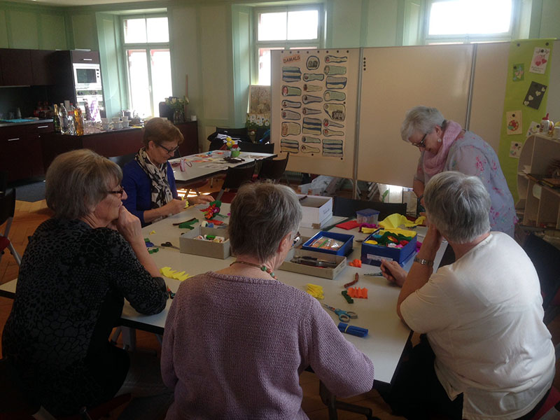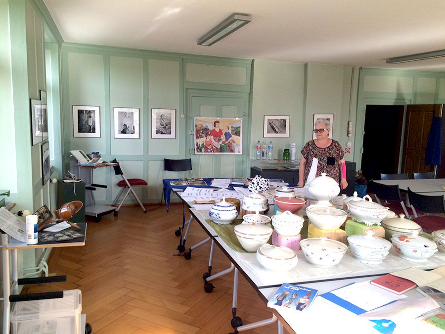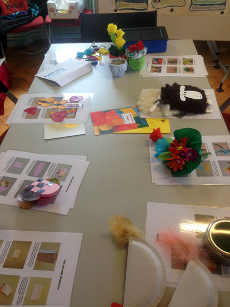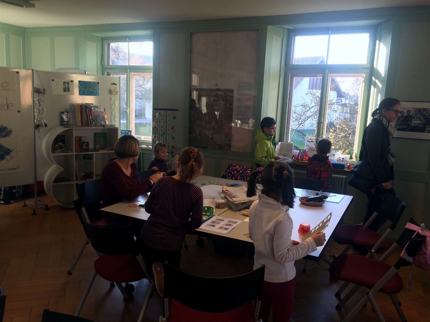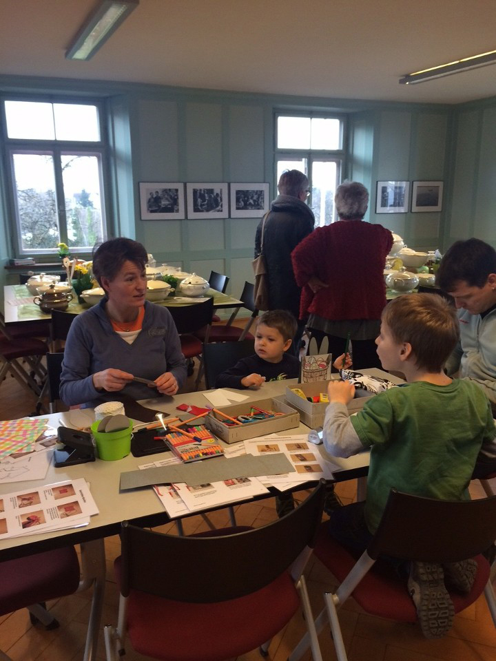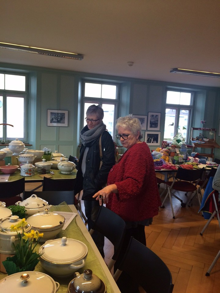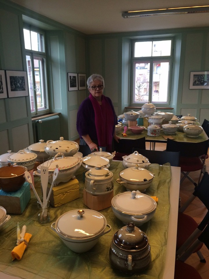 Frau Christina Schneider Pfändler zeigte ihre Suppenschüsselsammlung und bot mit Yvonne Joos-Halter zusammen einen Mini-Workshop für Grosse, Kleine, Ältere und Jüngere, Lehrpersonen und Privatpersonen... passend zum Thema: Ostertisch an.