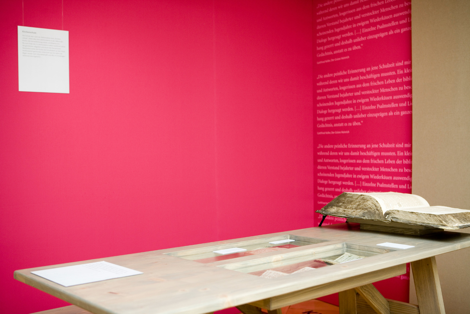 Im Zentrum der im August 2006 eröffneten Ausstellung standen die Kerndisziplinen Lesen, Schreiben und Rechnen. Die Besucher und Besucherinnen begaben sich auf eine Zeitreise. Einige ausgewählte Kapitel der 200-jährigen Entwicklung der Volksschule zeigten die «schwierigen Anfänge» der Schule auf. Was täten wir ohne Buchstaben und Zahlen? Wann ist ein Kind schulreif? Wie entwickelte sich die Buchschule zur staatlichen Volksschule? Welche Welten eröffnen sich Kindern, nach der ersten Begegnung mit dem Alphabet?